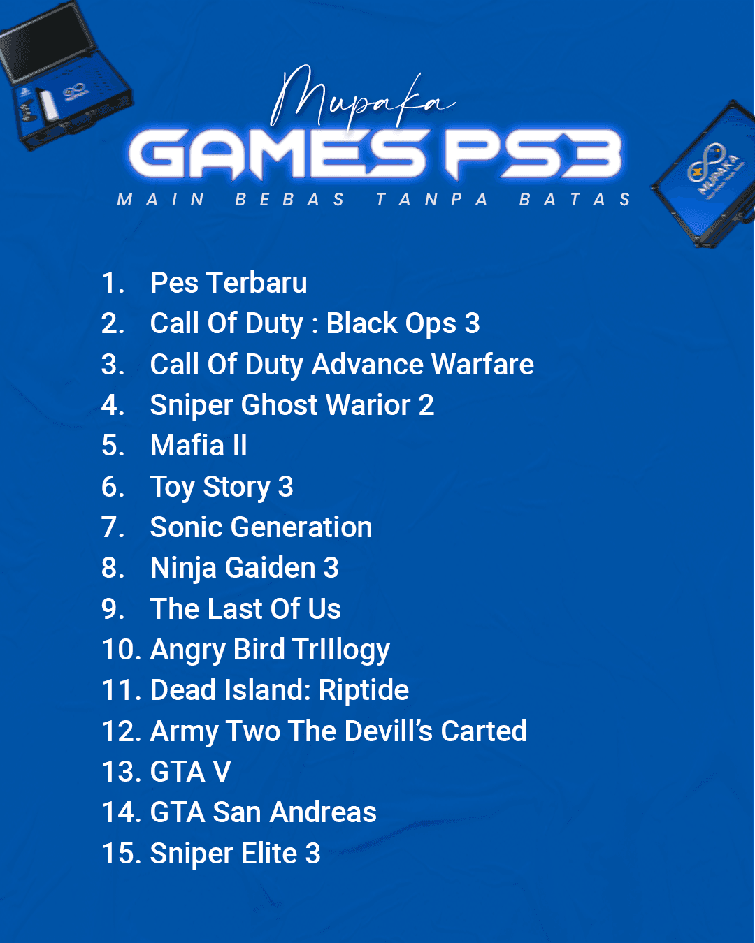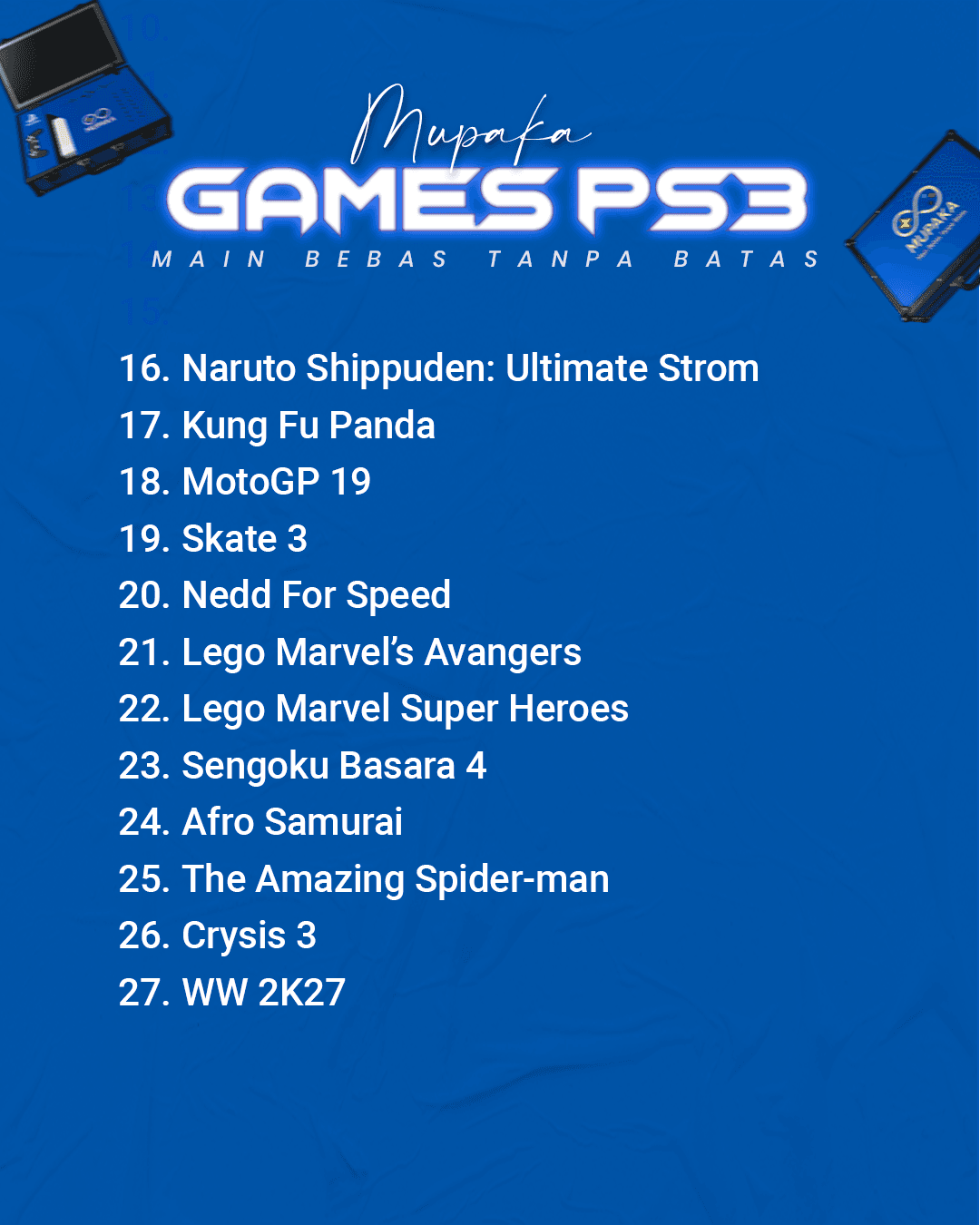 MUPAKA GAMES menyediakan layanan sewa PlayStation 4 dalam box eksklusif yang nyaman dan siap pakai. Cocok untuk kamu yang ingin hiburan berkualitas tanpa harus beli konsol sendiri. Tinggal datang, pilih game favorit, dan langsung main!